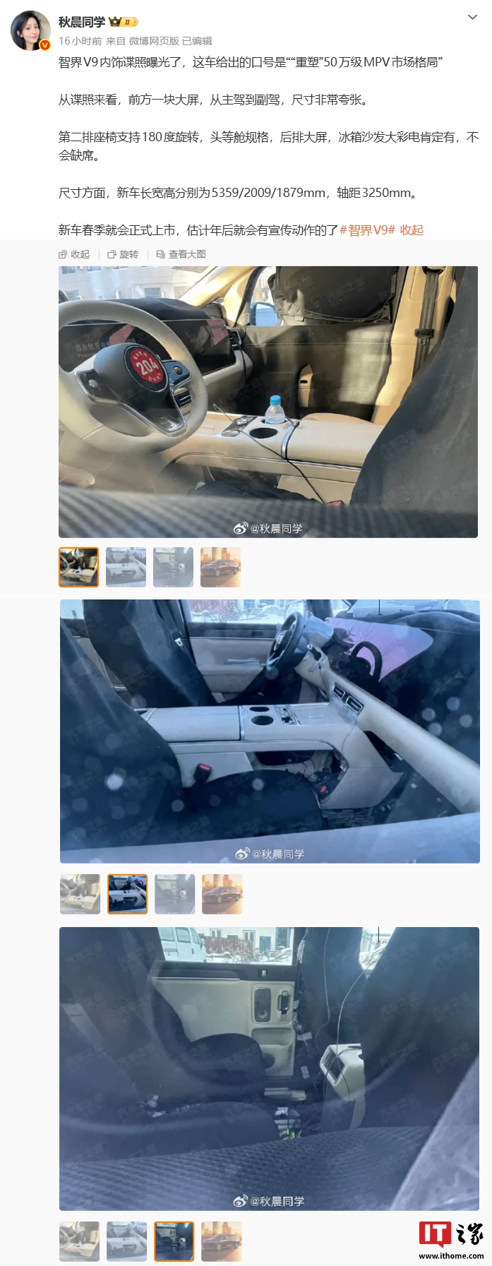 2月4日,博主@未来的学习笔记分享了鸿蒙智行智界V9的无伪装动态视频,并对其尾灯的辨识度表示赞赏。视频中展示了智界V9的外观设计,而博主还暗示次日将有更大的惊喜。此外,博主@秋晨同学早前曝光了智界V9旗舰MPV的内饰谍照,揭示了该车采用的最新三联屏设计,其中前方一块大屏从主驾延伸至副驾,方向盘则采用标准样式设计,更符合MPV的驾驶习惯。