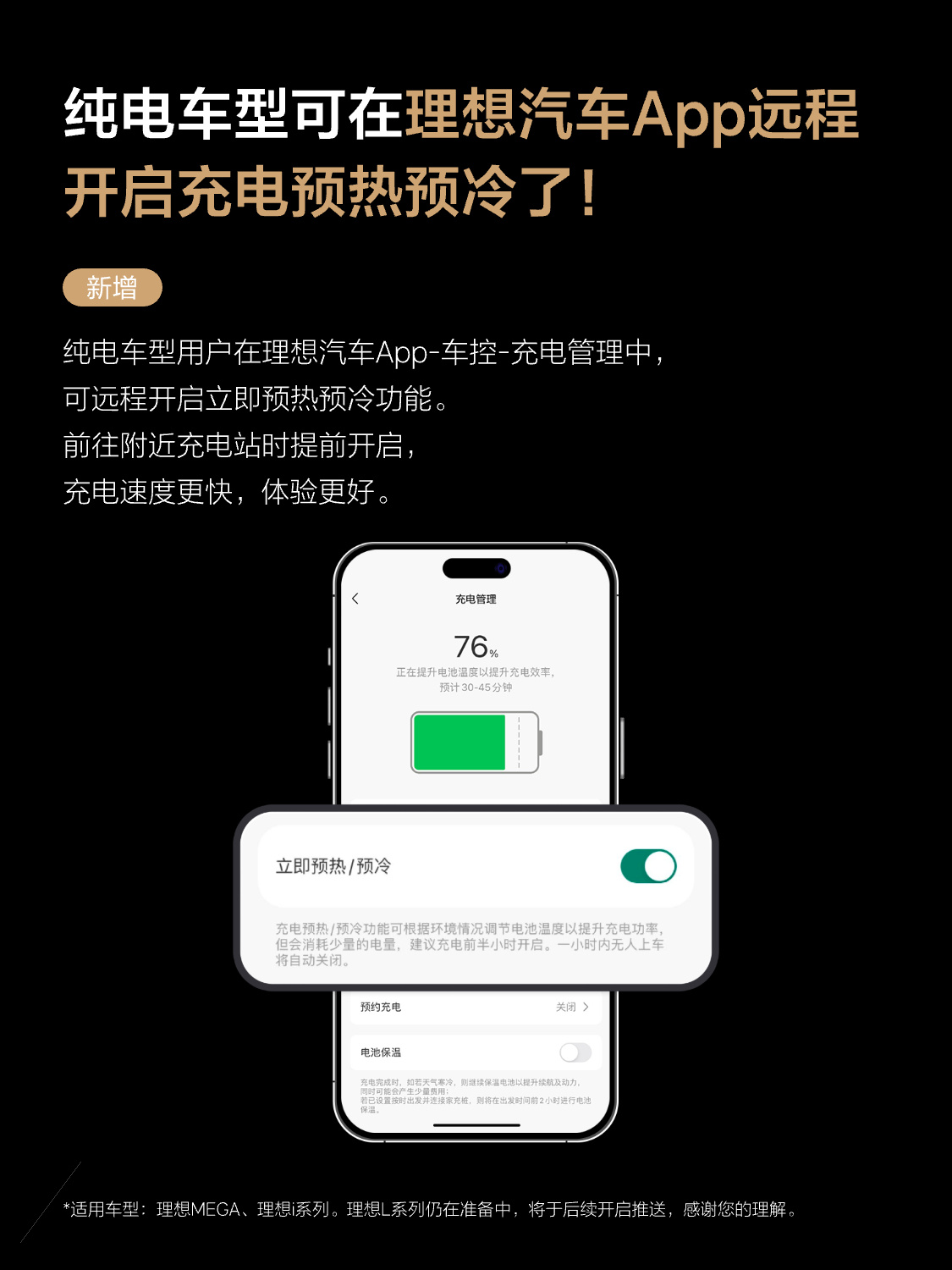 充电站实况,避免长时间排队。纯电车型用户现在可以通过理想汽车App远程开启充电预热预冷,以提高充电速度和体验。此外,车辆支持播放本地影音,兼容主流音视频格式,用户可以直接外接U盘观看。