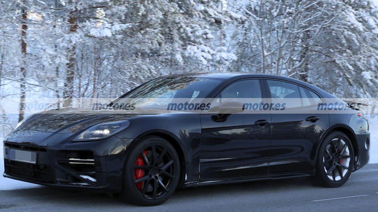 近日,保时捷Panamera的最新改款测试车在瑞典和德国被发现,标志着2028款Panamera的改款工程已经启动。谍照显示,两辆测试车覆盖着黑色伪装贴膜,重点遮挡了前保险杠两侧的大尺寸进气口,并新增了倾斜式格栅条设计。MatrixLED前大灯造型保持不变,但内部灯组图案将更新,风格将向纯电卡宴靠拢。此外,挡风玻璃顶部和内后视镜后方新增传感器模块,这是纯电Macan首发的安全辅助系统硬件。