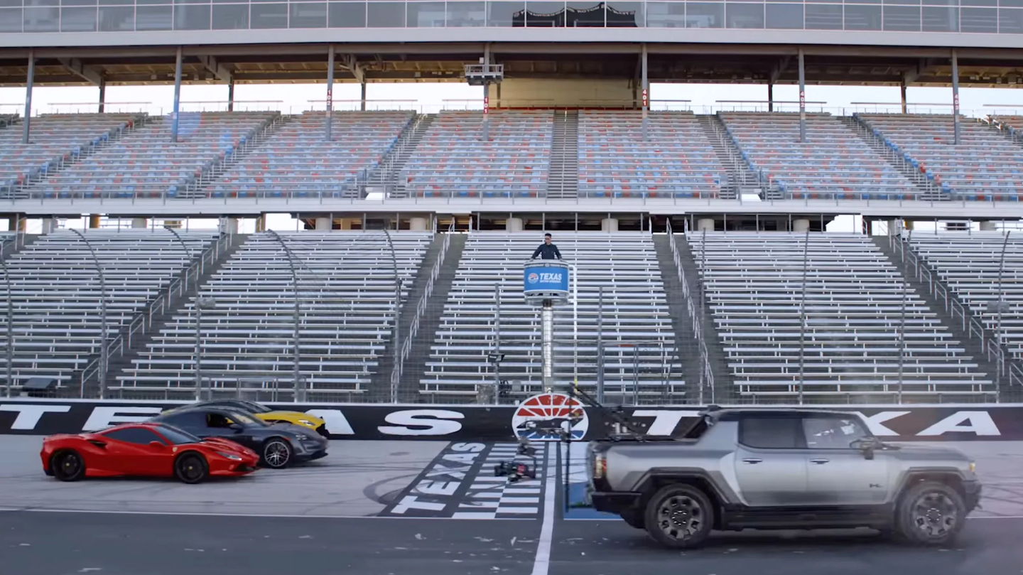 2月16日,通用汽车通过一场戏剧性的直线对决,让电动悍马HUMMER EV成为焦点。在官方2月11日公布的视频中,法拉利F8、福特GT、保时捷Taycan、道奇Challenger地狱猫和阿斯顿·马丁DBS Superleggera等超跑同场竞技。然而,真正的主角是作为“拍摄车”的HUMMER EV皮卡。在高性能版本下,HUMMER EV拥有1160hp输出,开启“Watts to Freedom”弹射模式后,0到97km/h仅需2.8秒,在短距离加速中甚至能甩开身旁的超跑。