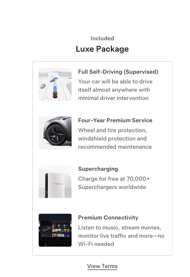 充电站终身免费超充、终身高级车载连接服务以及四年高端服务套餐的“豪华套装(Luxe Package)”。此外,购买Cybertruck顶配版本的车主也能享受这一待遇。然而,特斯拉新增条款规定,这些权益不可转让给后续车主或其他车辆,限制适用于豪华套装中的FSD与超级充电权益。
