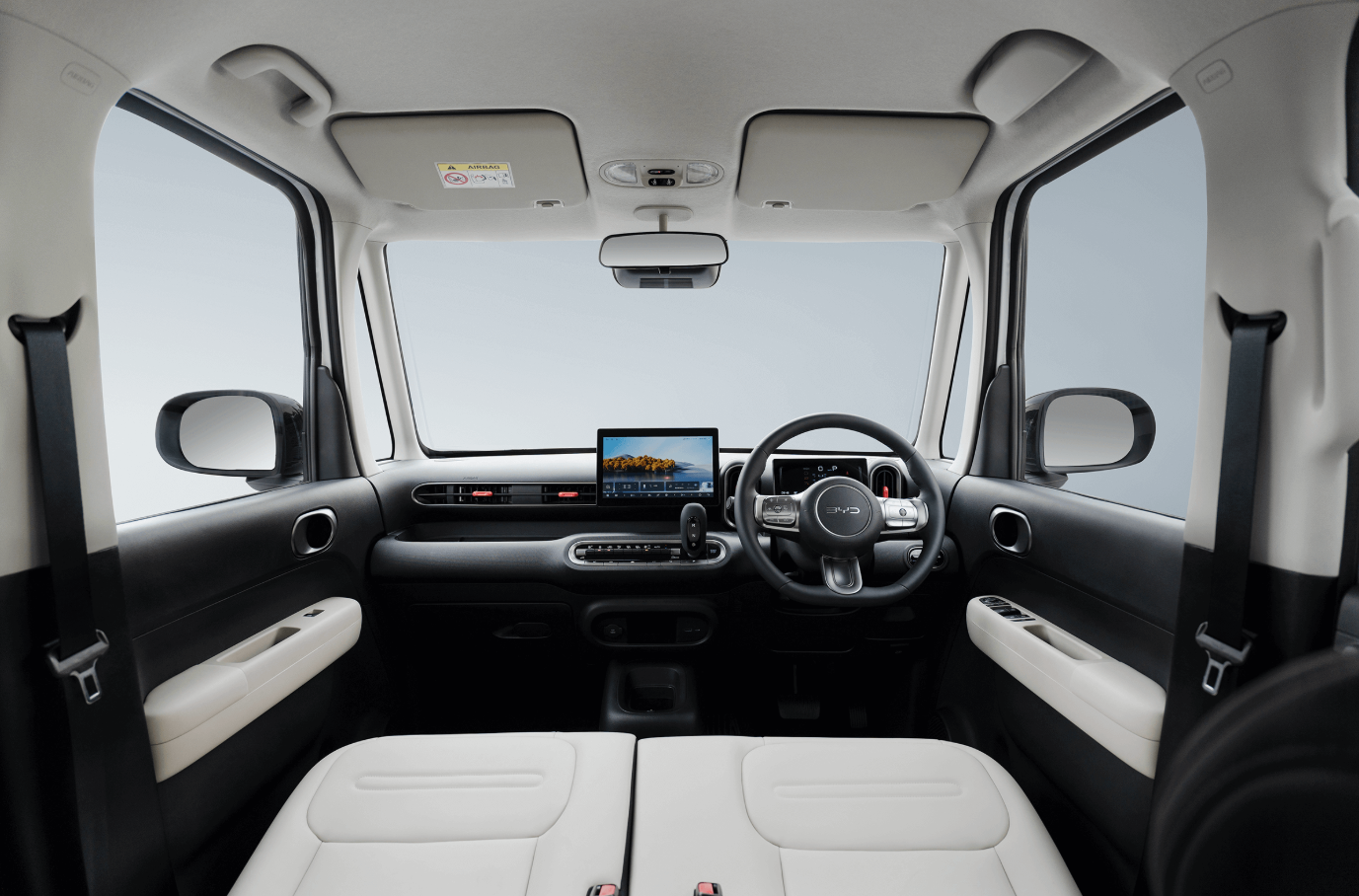 今日,比亚迪官方公布了其首款纯电K-Car车型“RACCO”的内饰设计。这款新车预计将于2026年夏季进入日本市场,其内饰设计遵循“海洋美学”理念,以圆润的表面和点圆图案营造出水面波浪的平静感,传递出温暖和亲和力。RACCO车型采用右舵设计,档把和物理按键排列整齐,配备小尺寸中控屏幕,同时车内设有长伞的垂直空间、常用卡片和智能手机的固定位置,以及适合放置塑料瓶和杯子的支架。
