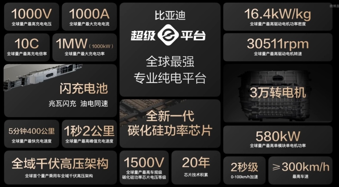 三元锂电池持平,但安全性更高。去年3月,比亚迪发布了兆瓦闪充站、闪充桩,宣称充电5分钟即可补充400km续航。比亚迪计划建设超过4000座兆瓦闪充站,并发布了具备超高电压1000V、超大电流1000A及超大功率1000kW的闪充电池,实现“兆瓦闪充”,拥有全球量产最高峰值充电速度——一秒两公里。