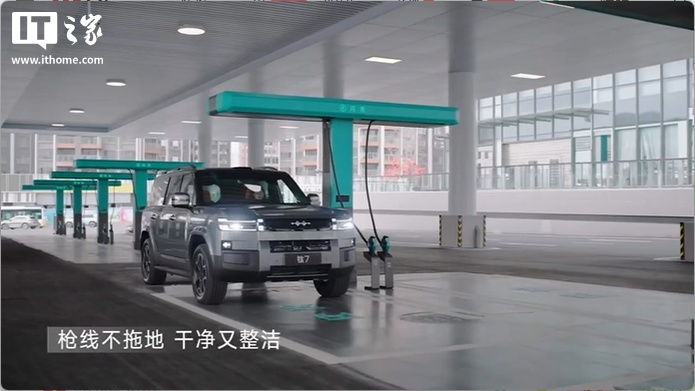 充电桩——比亚迪闪充桩,单枪充电功率高达1500KW。该充电桩设计独特,每座配备两把充电枪,即使两台车同时充电,也能保持闪充状态。每个充电桩还配备超级快放储能系统,每把闪充枪每天能服务50台车,按每台车40度电计算,每天可充2000度电。比亚迪闪充桩采用滑轨悬吊式T型设计,使充电枪和线保持悬空,避免缠绕和拖地,同时采用零重力充电枪,单手操作不费力,滑轨式设计方便左右滑动,适应不同充电口位置。