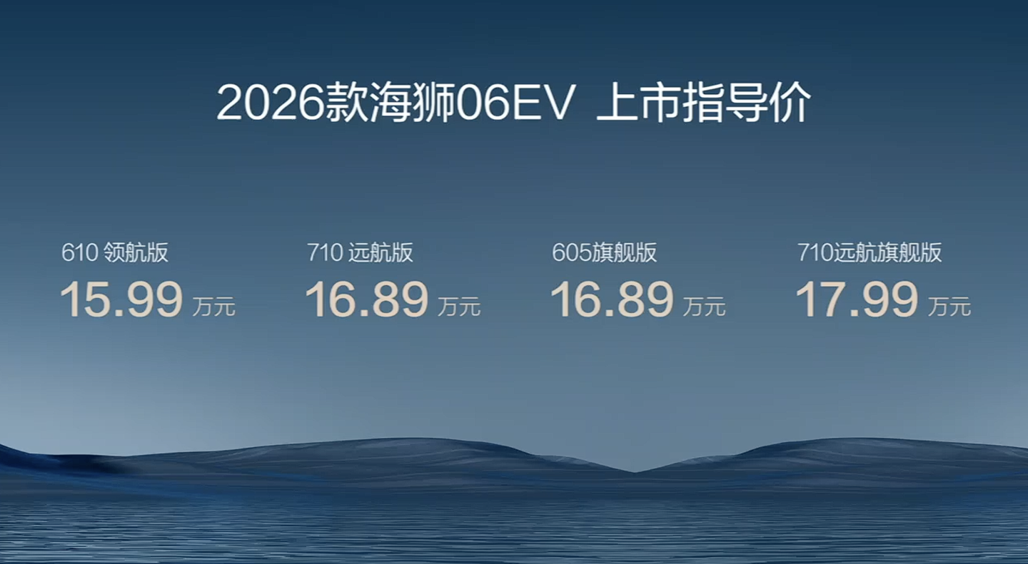 3月5日,比亚迪发布了2026款海狮06EV,新车在配置和性能上均有所提升。全系车型标配云辇-C和座椅记忆功能,同时提供前排座椅按摩和副驾电动腿托等选配。续航里程从605公里增加至710公里,强调快速充电能力,即在买杯咖啡的时间内即可满电出发。