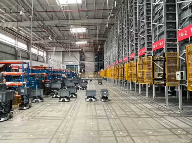 近两年,多家厂商已开启应用无人物流装备。例如,京东物流自主研发的智狼货到人系统已进入全国规模化复制与应用的新阶段,该系统集成了智狼搬运机器人、智狼飞梯机器人、立体货架等核心组件,以及自动入库和拣选工作站、空箱自动回流线等辅助设施,实现高密度存储。而小米物流自动化成品仓则集成了AMR机器人、自动检漏、RGV穿梭车及24米高架立体库等设备,实现从产品下线到存储分发的全流程自动化。