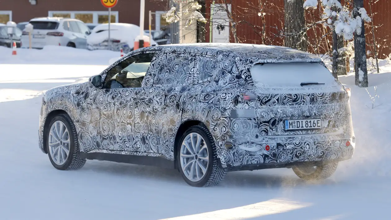 近日,外媒AutoExpress曝光了宝马全新一代iX1的谍照。这款紧凑型纯电SUV预计将在2027年推出,全面采用NeueKlasse平台技术。新一代iX1将拥有全新的外观、内饰以及电动技术,设计风格将向新一代iX3靠拢。新车预计采用更加平滑的车身线条和更具空气动力学效率的造型,前脸将配备封闭式双肾格栅,大灯造型向宝马经典车型致敬。尾部预计采用贯穿式尾灯和车顶扰流板,不同配置版本会使用不同的保险杠设计。