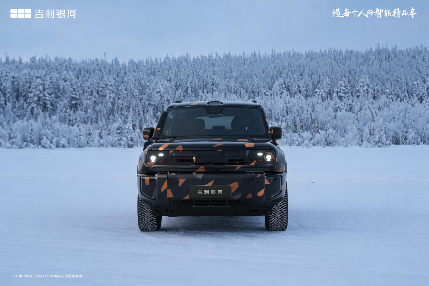 今日,吉利汽车宣布旗下首款AI全地形硬核SUV正式命名为“吉利银河战舰700”。该车型定位为科技硬核SUV,月初在瑞典Colmis等北欧测试场进行了冬季测试。相较于2025年上海车展亮相的概念车,测试车前脸调整为半封闭格栅设计,下包围造型更为硬朗,取消了贯穿式光源及
