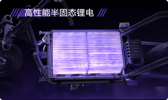 电池技术在两轮电动车领域的商用落地。顶配200L版本搭载了与太蓝新能源合作的72V109Ah半固态电池,相较于同级车型常见的72V50Ah电池方案,电量提升高达118%,一次充电可行驶112公里,循环寿命超过1500次。该电池支持5C高倍率放电,极速可达110km/h,提供高性能机车的驾驭感。