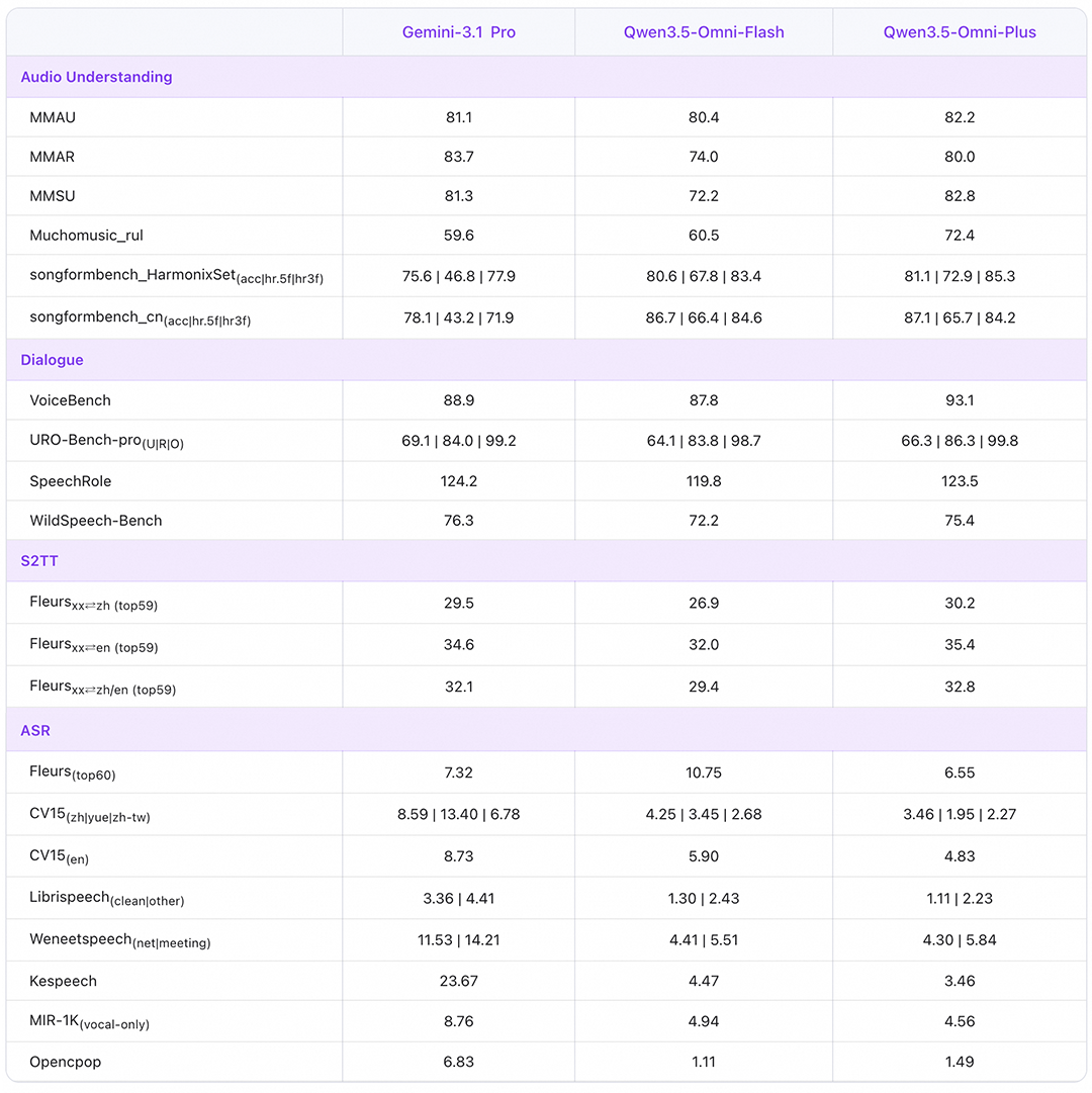 3月30日,阿里巴巴集团旗下的阿里千问发布了全新的全模态大模型Qwen3.5-Omni,该模型在多模态理解和生成能力上取得了显著进步。Qwen3.5-Omni能够无缝理解文本、图片、音频及音视频输入,并支持细粒度、带时间戳的音视频Caption生成。在音频及音视频分析、推理、对话、翻译等任务中,该模型以215项SOTA成绩超越了Gemini3.1-Pro,展现了其在自然语言处理领域的强大实力。