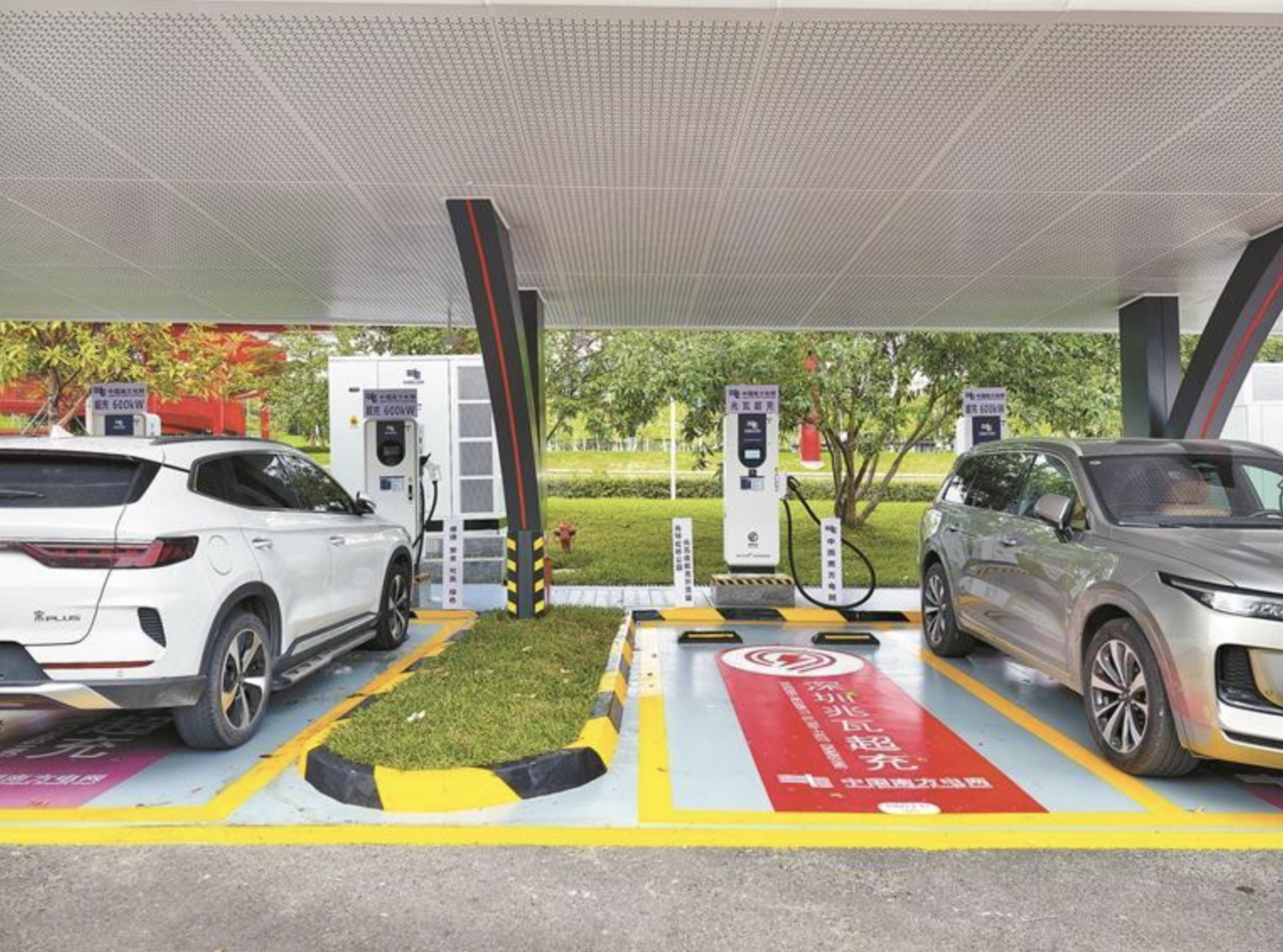 充电桩,覆盖37个车位,单次最大放电功率达到2770千瓦。其中,1台为具备1000千瓦充放电能力的兆瓦级超充,最快5分钟可补400公里续航;6台600千瓦超充桩,充电速度最快“一秒一公里”;11台250-300千瓦快充桩,30分钟或更短时间可充至80%电量;其余为30-120千瓦快充桩。