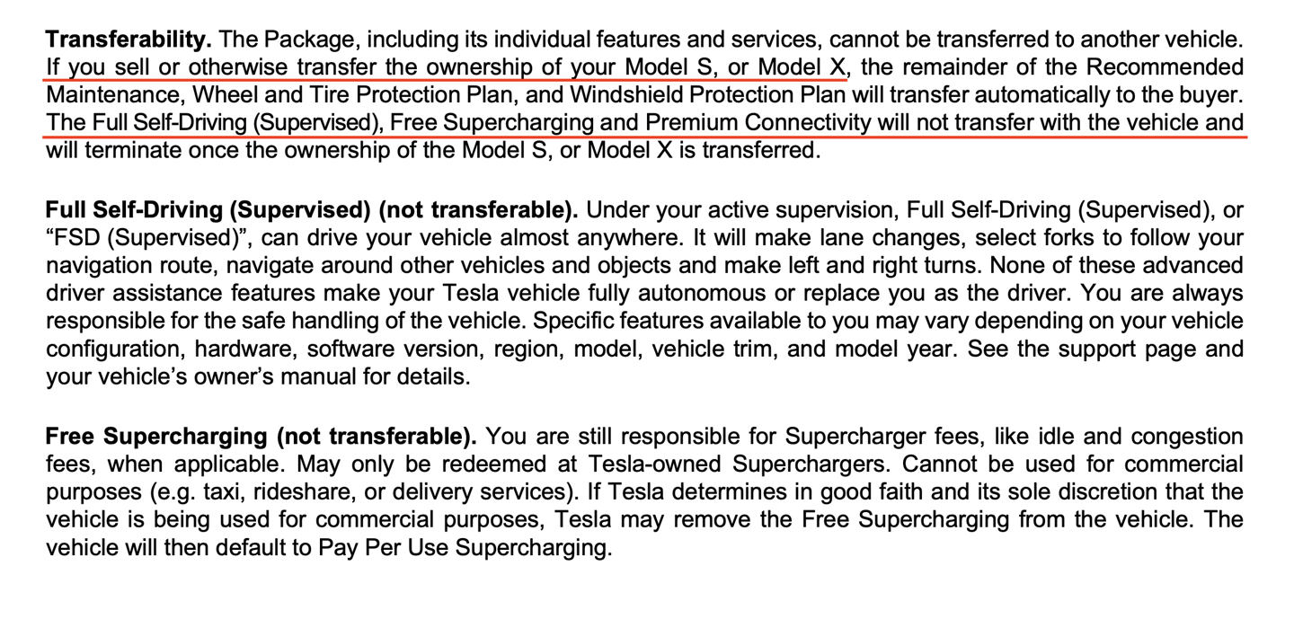 特斯拉仅生产250台Model S、100台Model X纪念版,均采用专属的石榴红车漆、金色车标与独特装饰套件。特斯拉此前在Cybertruck上也试过类似手段,但最终整个计划宣告失败。而这一次,情况有几个关键差异。新版协议条款更清晰,执行难度也可能更低。特斯拉这次的约束力也更强,因为这批车是真正的限量款:总计仅350台,远少于Cybertruck的数千台产量。最重要的是,特斯拉将FSD、免费超充、高级车载连接服务等核心权益设为不可转让。这意味着即便一年后,车辆对二手买家的价值也会降低,从根源上削弱了倒卖动机。