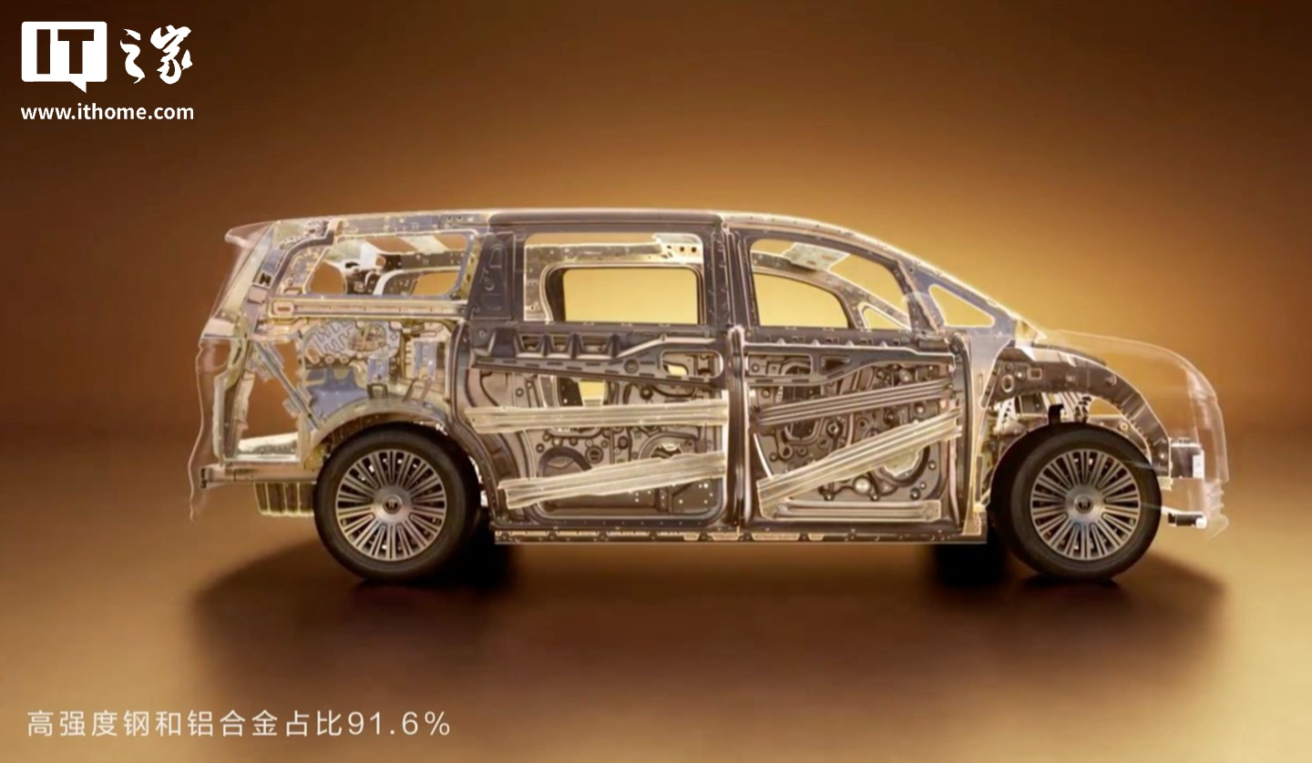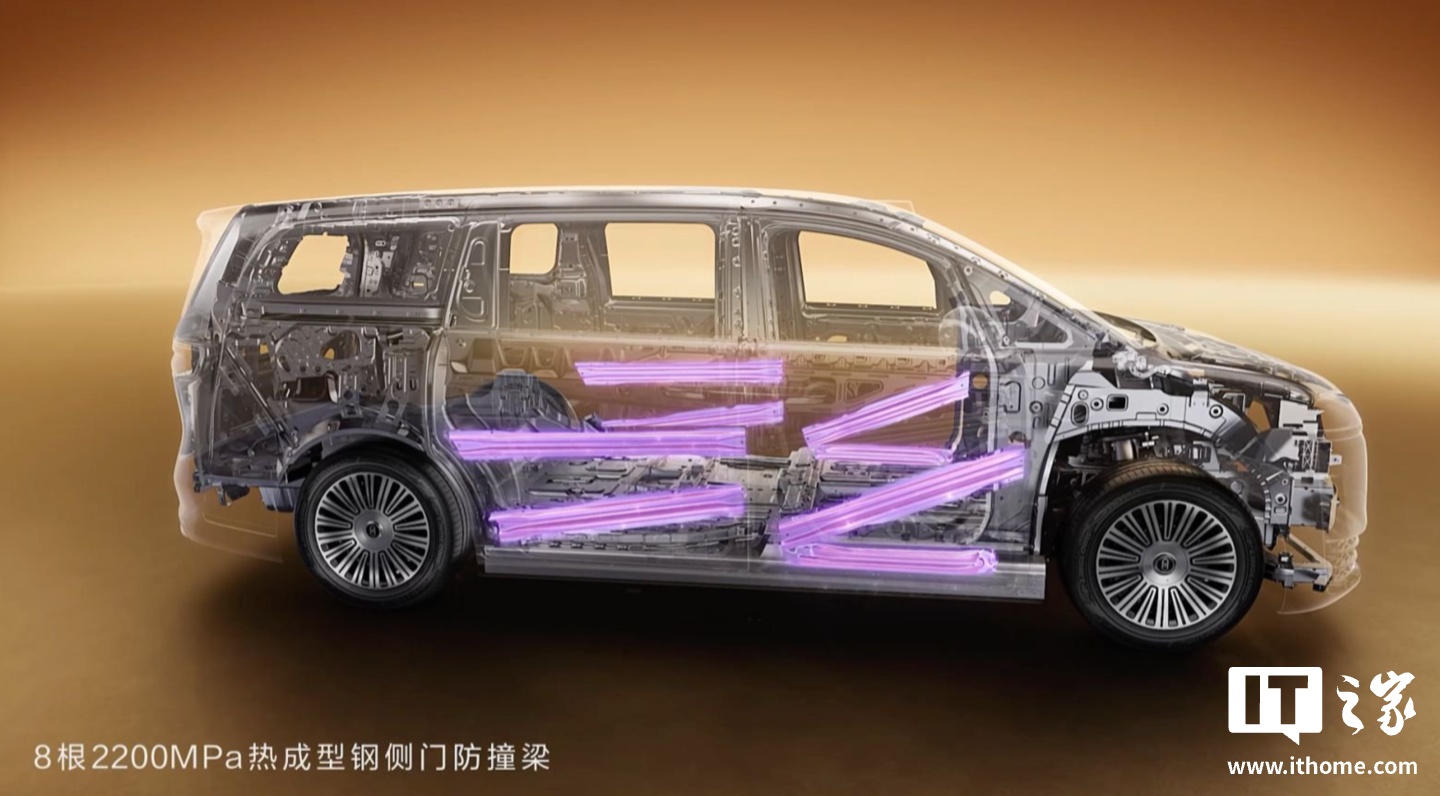 4月20日,智界V9全维安全白车身技术细节公布。该车型采用“11横6纵”车身结构设计,搭载一体式热成型钢门环,高强度钢、热成型钢及铝合金综合占比达91.6%。智界V9在A柱内嵌2000MPa热气胀管柱,配合76%覆盖率的“目”字形防撞梁和211mm宽吸能盒,侧面配置8根2200MPa热成型钢侧门防撞梁,底部采用5mm厚11宫格挤出铝门槛梁和双2000MPa热成型钢车身横梁,提升侧碰安全性同时保护