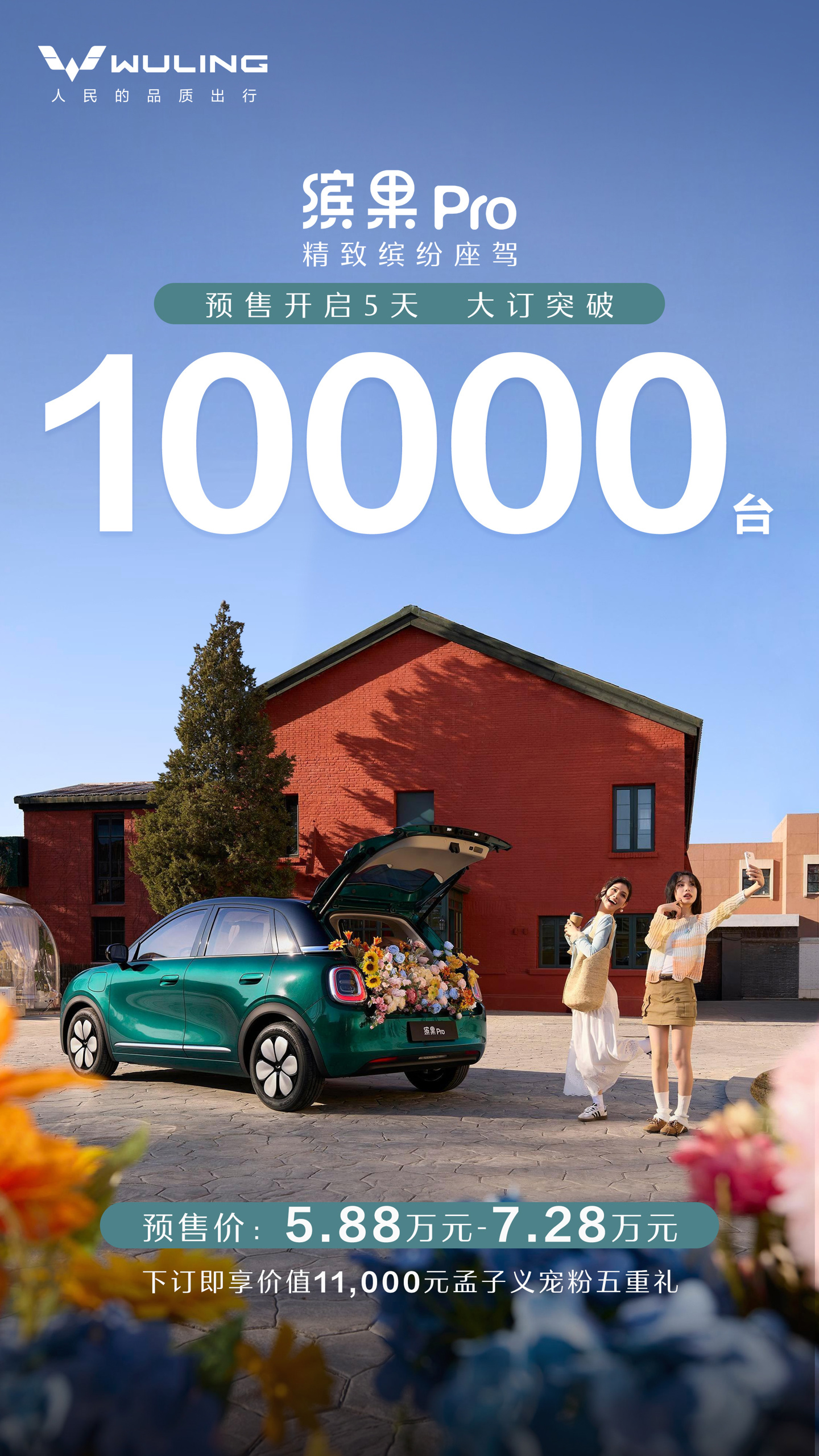 4月20日,上汽通用五菱宣布,缤果Pro纯电小车预售5天,订单量已突破10000台。缤果Pro于4月14日开启预售,定位为“精致缤纷座驾”,预售价5.88万元起。该车提供330KM尊享款、330KM旗舰款、403KM尊享款和403KM旗舰款四种配置,价格分别为5.88万元、6.58万元、6.68万元和7.28万元。