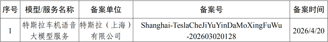 4月22日,网信上海发布最新公告,上海市新增一款完成备案的生成式人工智能服务,使得累计备案服务数量达到158款。最新备案的服务为特斯拉车机语音大模型服务,由特斯拉(上海)有限公司负责备案,备案日期为4月20日。