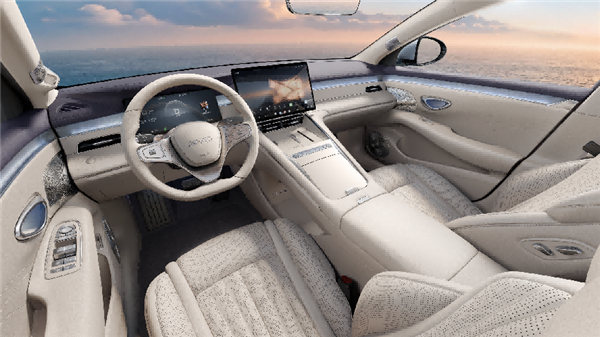 海豹08首次公开实车内饰,基于海洋美学2.0设计打造,采用大面积软包、光韵贝母饰板等高端材质。海豹08拥有同级领先的越级大空间,前排双零重力座椅、后排电动腿托,支持全车座椅通风加热按摩。此外,海豹08还配备迎宾光毯、智能电吸门、全车双层隔音玻璃等越级配置。